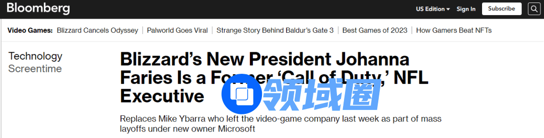 据彭博社消息,Johanna Faries职业生涯开始于传统体育行业,曾在美国国家橄榄球联盟(NFL)任职12年,并于2018年加入动视暴雪,主要负责《使命召唤》与《守望先锋》的电竞赛事运营等业务。