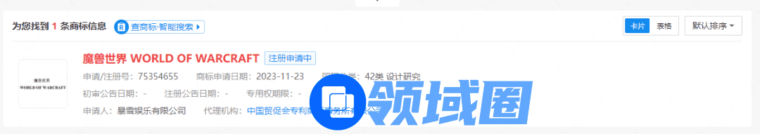 大洋彼岸,暴雪娱乐新注册“魔兽世界 WORLD OF WARCRAFT”商标一枚,目前正在申请中。