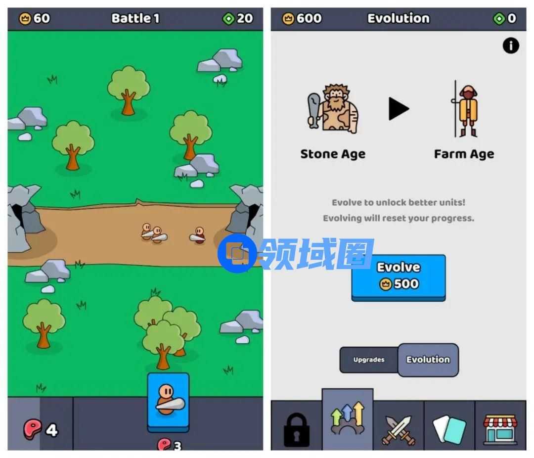 与此同时,由Lessmore UG发行的《We Are Warriors!》也在本周冲上了免费游戏榜单TOP11。该游戏在极简的美术包装下有一个休闲对战类的核心玩法,在战斗的过程中,玩家需要消耗食物派出对应士兵,击败敌方士兵并退掉基地,即可获得对应的金币奖励,获得的金币又可以用来提升食品产出效率和基地的生命值,还可以用于解锁更多兵种,以提升对战成功的效率。