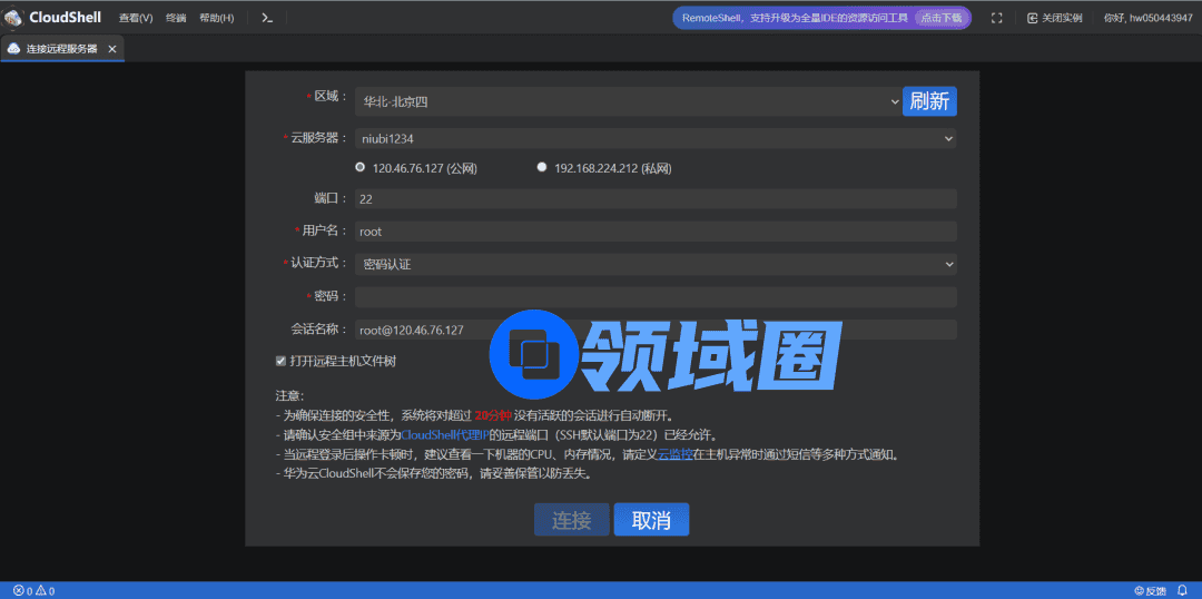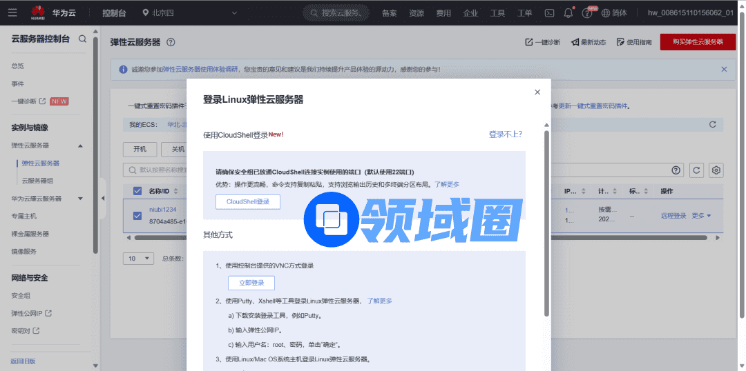 做完这些准备工作后,在云服务器的控制台,找到“远程登录”。