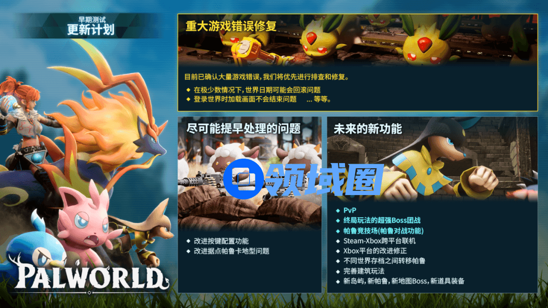 虽然宝可梦公司并没有直接点名《幻兽帕鲁》,不过考虑到1月的时间点,似乎也没有更加符合的游戏产品。此外,《幻兽帕鲁》也在近期发布了后续的更新计划,除了现在必须要修复的大量BUG外,官方同时也将PVP、终局的超强BOSS团战、帕鲁竞技场(帕鲁对战功能,嗯,你们都懂得)等玩法作为后续更新的重点,相信随着游戏内容的丰富,《幻兽帕鲁》的热度还将维持很长一段时间。