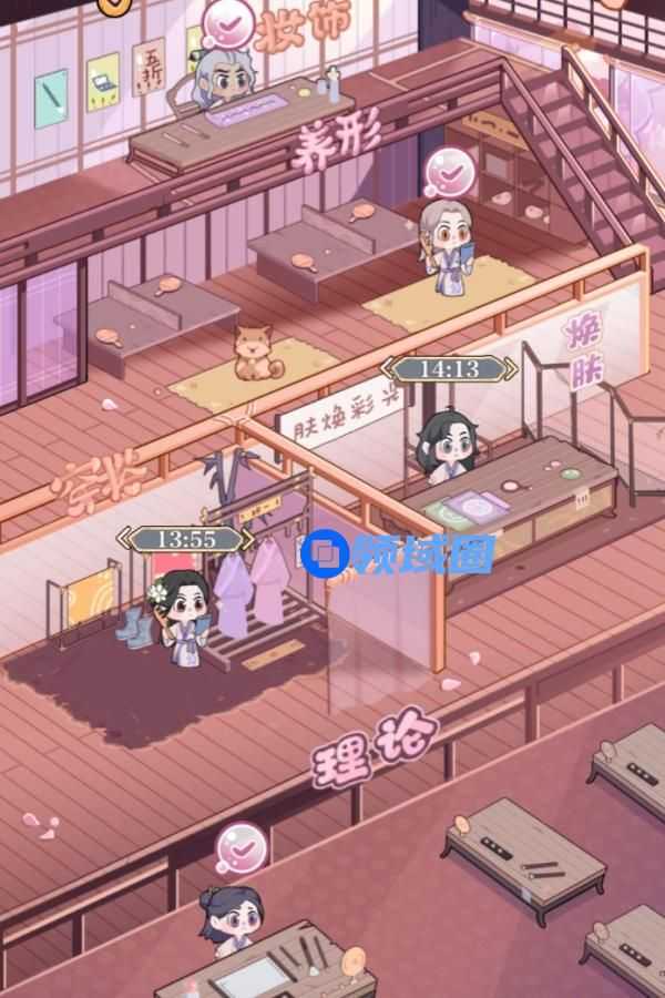 神颜阁中,你可以招募竹马县的素人,通过妆饰、养形、焕肤、穿搭以及理论这五门课程对他们进行提升。