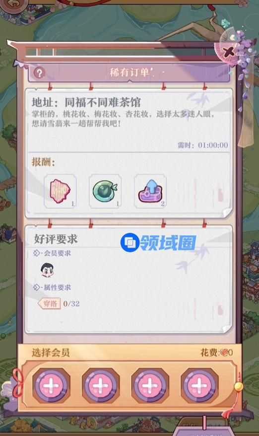 在美愿屋中,你可以派出之前招募来的会员,完成竹马县中有妆造需求顾客发出的订单。在这当中你可以提升美愿屋店员等级,增加订单数量以及出现稀有订单的概率,当全部完成后可以收集更多的好评评语以及线索奖励。