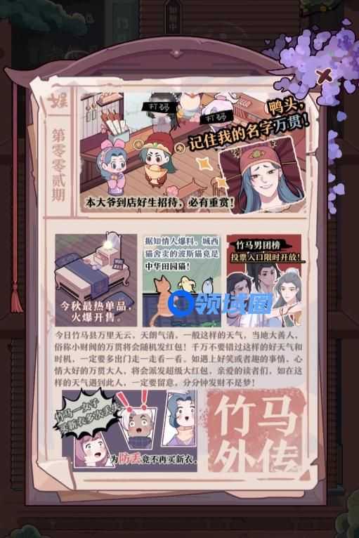 随着等级的逐渐提升,玩家也将解锁竹马县的大地图。在大地图上坐落着各类竹马县的建筑,每个建筑达成一定条件后将会解锁相应的建筑收益,在这当中还能了解到建筑主人的完整故事。当你拥有足够实力解锁全部区域之后,整个庞大的竹马县县城布局将会清晰的展现出来,随着店铺和设施的增多,可以通过装饰来进行自定义装扮,以让你的“商业帝国”更大强大。