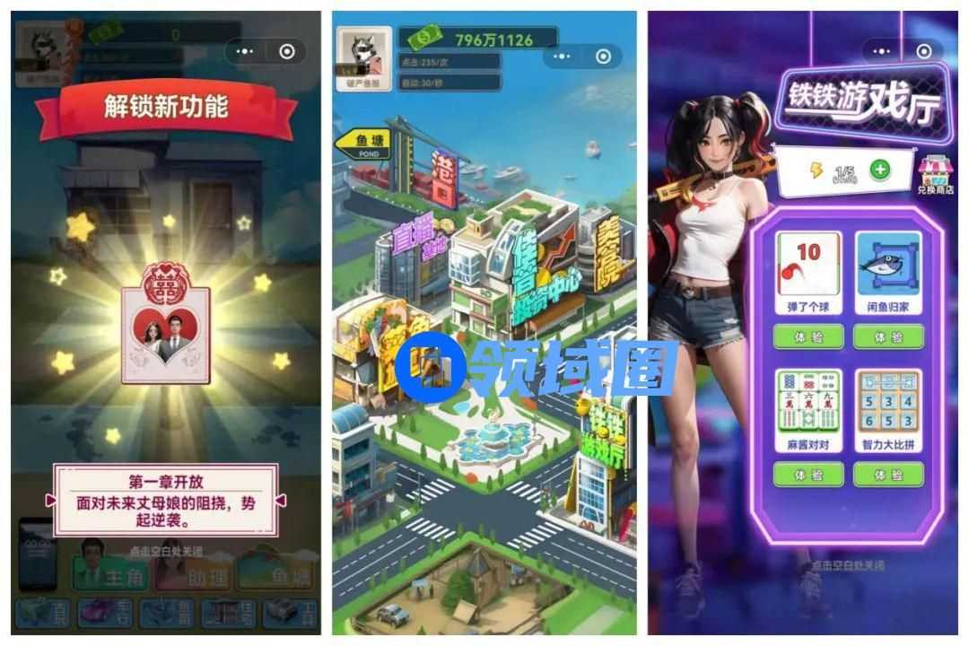 同时,一款名为《这鱼塘我包了》的小游戏也于本周冲上了微信人气榜TOP2。该游戏是一款内容非常丰富的模拟经营游戏,游戏中,玩家扮演重活一世的男主角,需要通过各种途径提升自己的收益,迎娶白富美,走向人生巅峰。题材上,该游戏既包括了重生、逆袭等流行要素,还包括了鱼塘、上帝等网络热梗;玩法上,该游戏在以放置为主的“鱼塘”核心玩法之外,还糅合了街机、模拟、解谜等丰富多样的小游戏玩法。