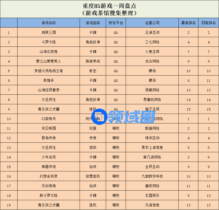 重度H5游戏:《胡莱三国》稳霸榜首,《末日帝国》冲上TOP2