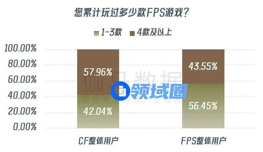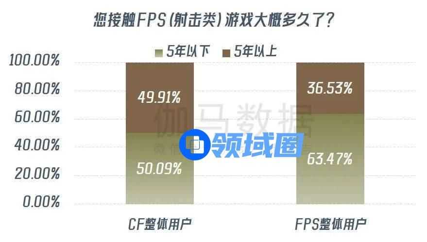 从用户特征层面来看《穿越火线》用户普遍对FPS品类游戏接触数量多、时间久,FPS品类核心用户占比更高。同时也可以看出,即使在游玩过众多同类游戏且接触FPS游戏较长的情况下,依旧有大量玩家保持对《穿越火线》的偏好,也进一步佐证了《穿越火线》的产品竞争力 。