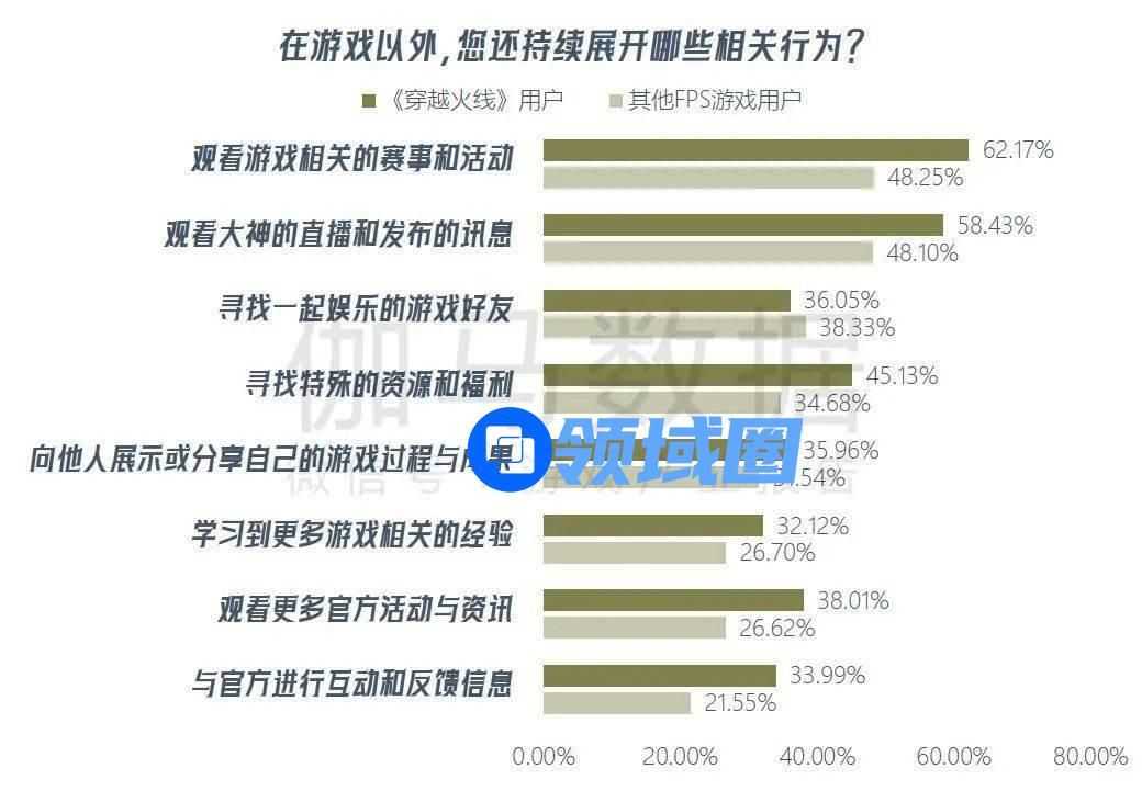 游戏赛事成为《穿越火线》最具优势的主要原因,超六成《穿越火线》用户会在游戏外持续观看游戏相关赛事及活动,相比于其他FPS游戏也显著更高,而用户游戏外观赛行为也与游戏内动力呈现出相互推动的关系。