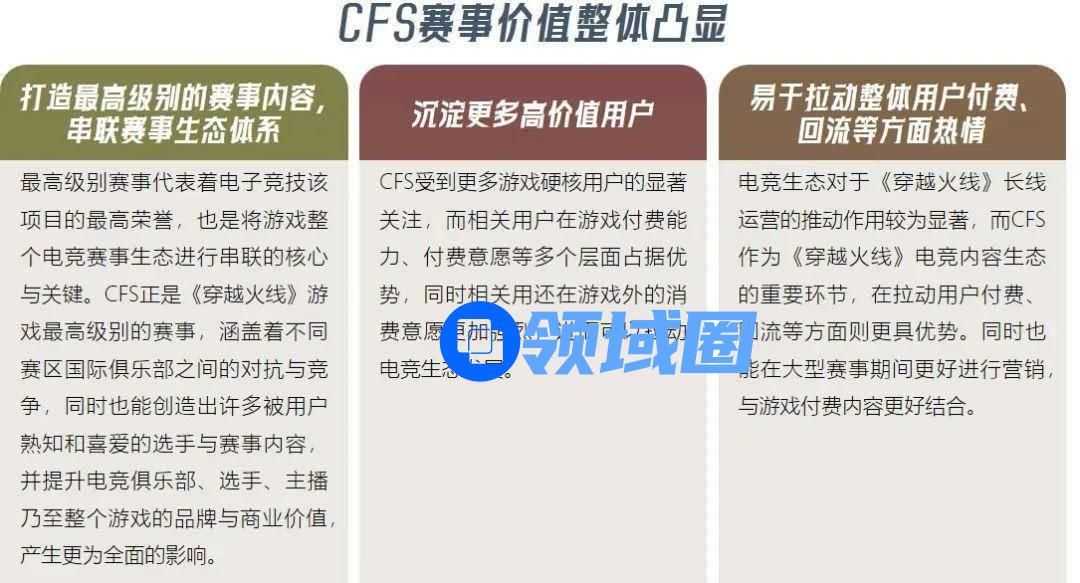 CFS赛事的商业价值不仅仅局限于《穿越火线》游戏之内,赛事对关联产业的帮助也是巨大的,最终受益的是整个游戏电竞生态,如何借助用户的游戏外行为扩大电竞生态也将成为CFS未来发展的重点。