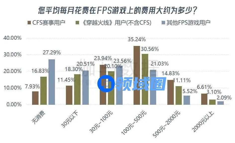 《穿越火线》用户整体付费能力较强,高于其他FPS用户,但伽马数据通过调研发现,CFS观赛用户中,大R用户占比更高,其中月消费500元以上的高消费群体占比更是超过两成,大幅领先其他FPS游戏,可见核心高消费群体对这一赛事关注度更高,而CFS赛事用户也具备强消费能力的特点。