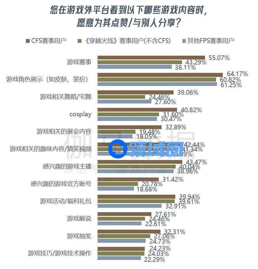 需要注意的是,电竞用户自发的对赛事内容的传播行为是赛事能否扩大其影响力甚至破圈的关键要素。据伽马数据统计,游戏赛事是CFS用户在游戏外平台转赞率第二高的因素,超过半数CFS用户会主动分享赛事内容,并扩大赛事影响力,未来《穿越火线》需要强化这一层面对于用户的引导,进而让CFS相关内容触达到更多用户群体。