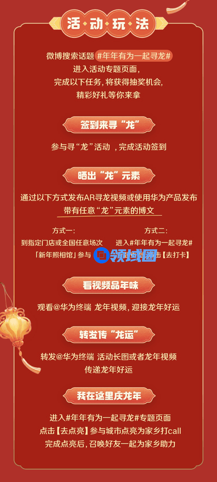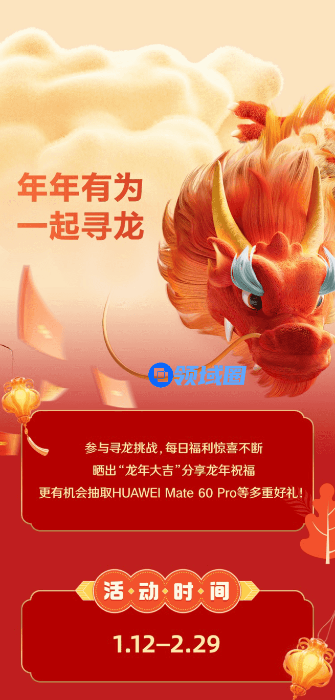 此次寻龙之旅,让我们与华为一起将龙年祝福分享给身边的朋友,感受即将到来的新年氛围。感兴趣的朋友快来参与!