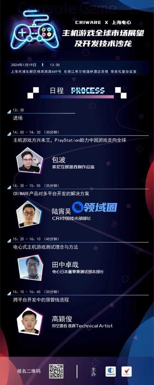 而就在这样的浪潮之下,上海电心和 CRIWARE 决定于 1 月 19 日联合举办一场主题为「主机游戏全球市场展望及开发技术」的沙龙。希望借此机会,能够对有多平台登陆计划的游戏行业从业者们,提供一些信息和技术参考。