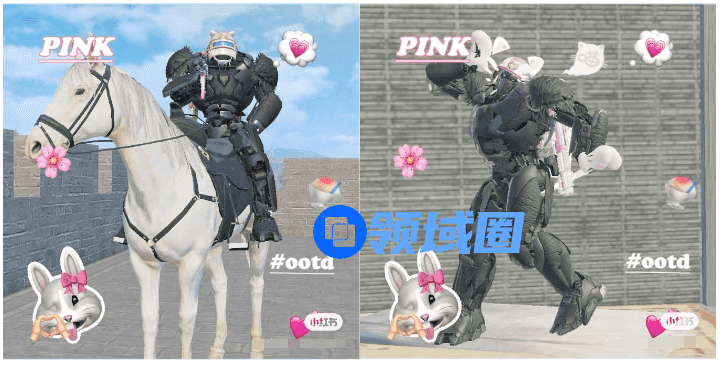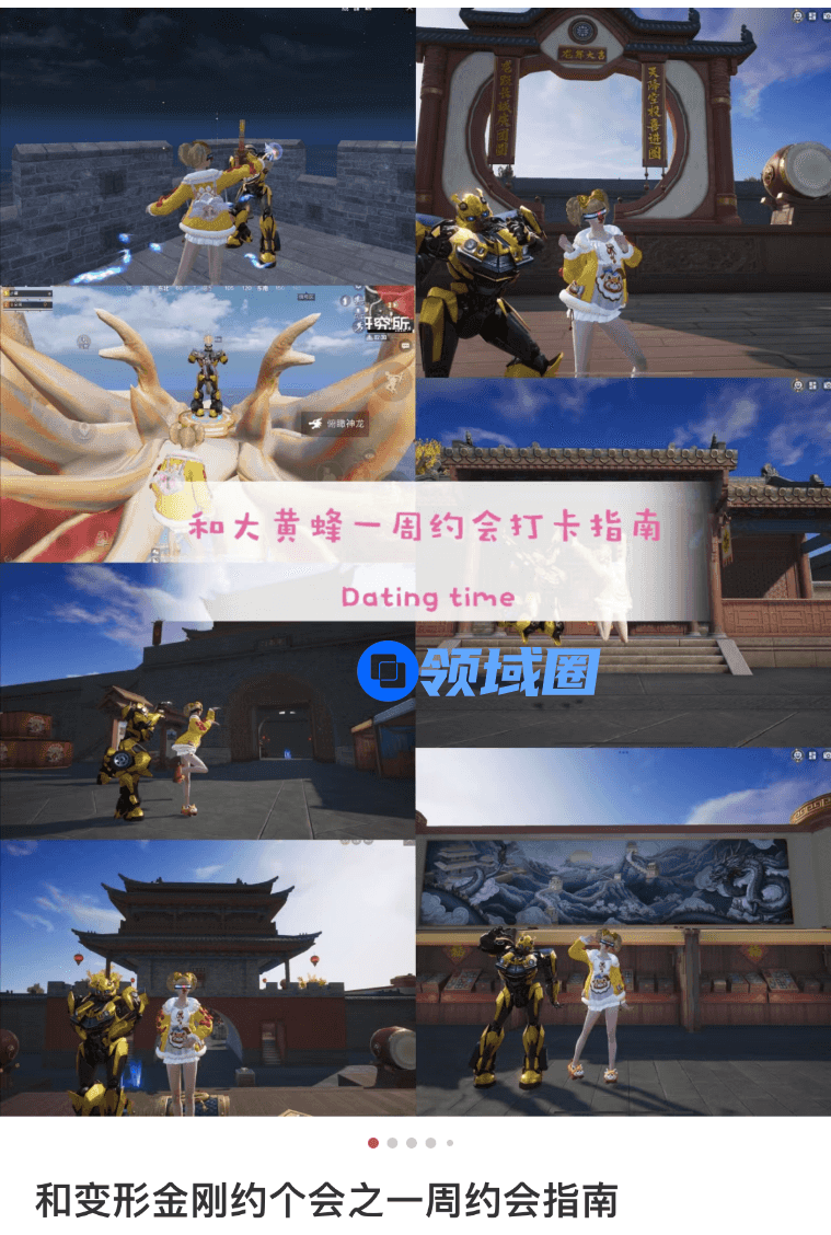 还有玩家在战斗之余爱上了角色扮演,结合游戏场景虚构故事,结合自己的灵感塑造“变形金刚”的另一面。猩猩队长的反差萌就被玩家发现了。玩家给它戴上粉红头盔,骑上小木马打卡拍照,谁看见能不迷糊,说这不是个“小可爱”?还有玩家推出了《和变形金刚约个会之一周约会指南》,安排了一场别开生面的“海岛Walk”活动,一周七天打卡地点不重样,实现和“童年男神”大黄蜂在龙脊关看烟花、打鼓,登长城的趣味旅程。