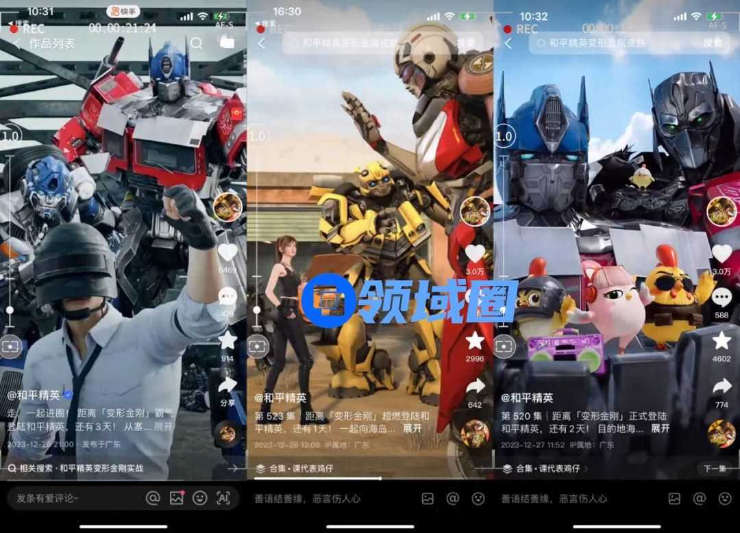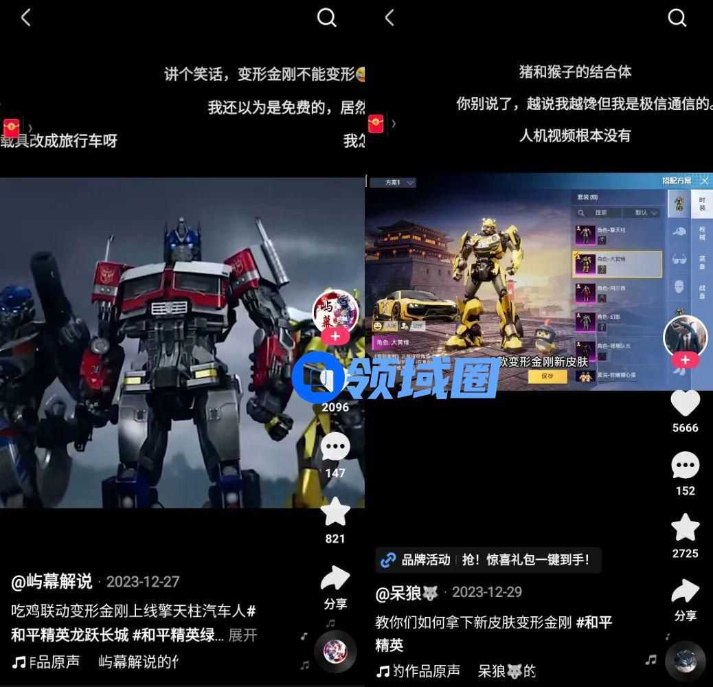 此外,茶馆还发现,《和平精英》玩家的造梗能力也不仅限于线上,因为北京环球影城拥有变形金刚基地,随着联动活动开启,玩家开始前往线下打卡,并拍摄“整活视频”,在抖音和微博等平台获得极高的传播量。其中,#和平精英女郎挑战威震天#的微博词条就登上了微博热搜,获得3228w+阅读量。