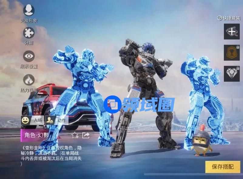 登进游戏,茶馆发现原来最近《和平精英》推出了新年联动第一弹:由孩之宝正版授权,与孩之宝旗下知名IP《变形金刚:超能勇士崛起》展开重磅联动,为玩家带来一份“加量版”新年“全家桶”。不仅有猩猩队长,还有擎天柱、大黄蜂等经典角色亮相海岛,更有以《变形金刚》为灵感设计的原创载具皮肤、僚机、飞行器、三级头、平底锅、降落伞等主题外观,让《和平精英》的海岛瞬间化身为“塞伯坦星球”。