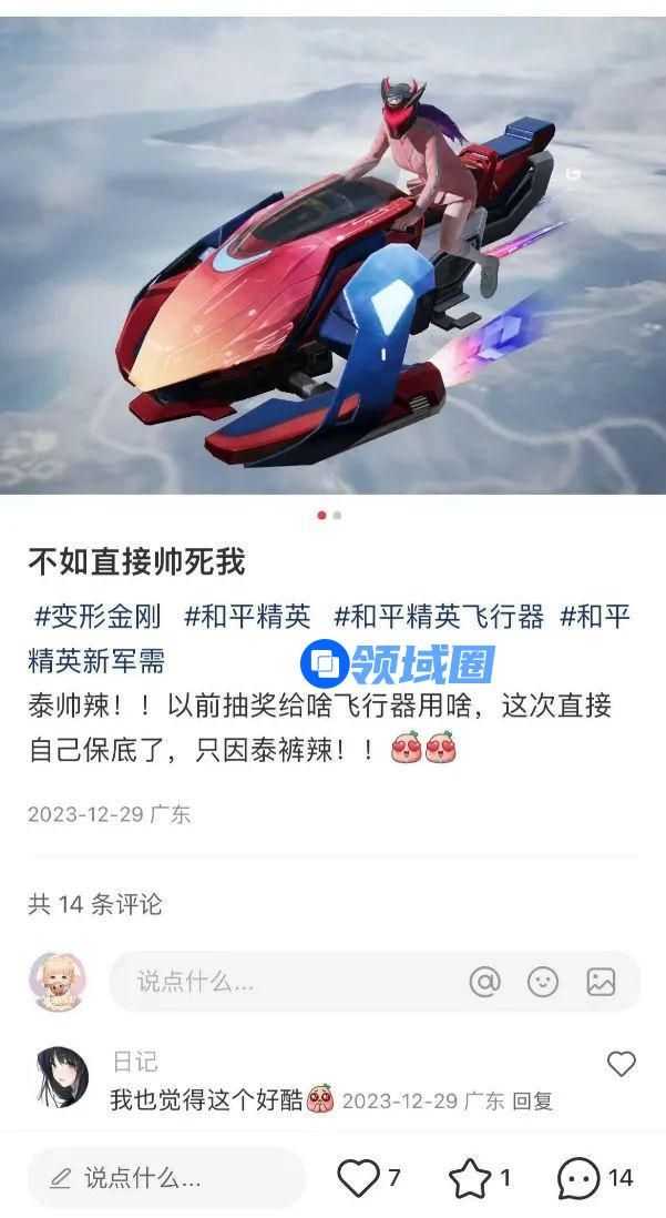 在联动皮肤之外,也有玩家爱上了《和平精英》以擎天柱红蓝配色为灵感设计的首款坐骑式飞行器,玩家在跳伞后能够直接坐上飞行器帅气登陆海岛。