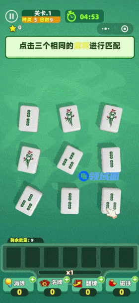 其中,《超级消不停》采用的是类似于《羊了个羊》的堆叠消除设计,玩家需要在关卡画面中的麻将中,将三个相同的麻将加入消除槽位即可完成消除。由于玩家可利用的槽位一共只有6个位置,因此玩家需要发挥自己的眼力和脑力,在合理利用6个槽位的情况下,将画面中的所有麻将进行消除。