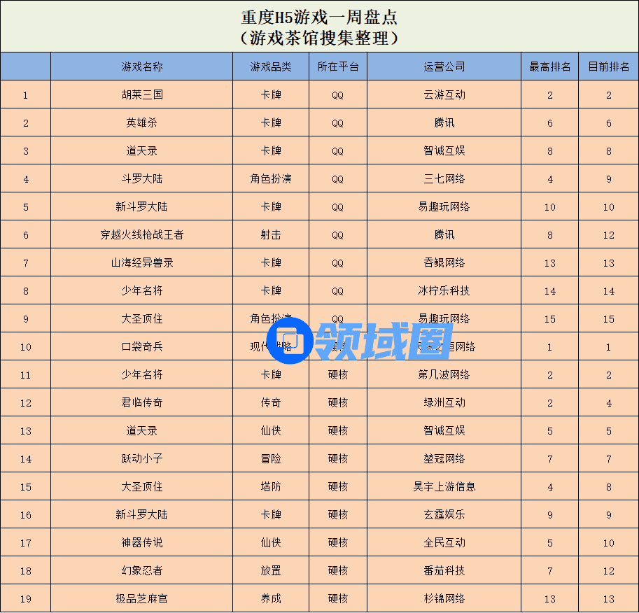 重度H5游戏:《胡莱三国》稳霸榜首,《极品芝麻官》重回榜单