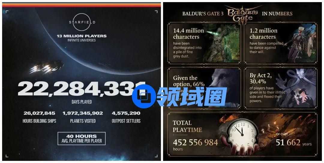 不过,近日,《星空》开发商 B 社与《博德之门 3》开发商拉瑞安工作室各自分享了自家游戏的统计数据。