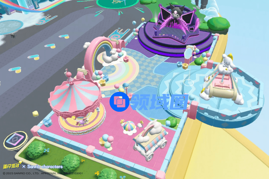 从「蛋仔岛」与联动分主城入手,《蛋仔派对》汲取了三丽鸥家族承载的治愈、甜美的品牌底色,打造了包含了多元游乐设施的沉浸式主题乐园。在「蛋仔岛」简单、高效、直接的社交机制基础上,玩家可以轻松抱举起陌生人,共同挑战「大耳狗海盗船」,感受极限摆荡的刺激;又或者一起跳上旋转木马,沉醉于温馨甜蜜的时刻。