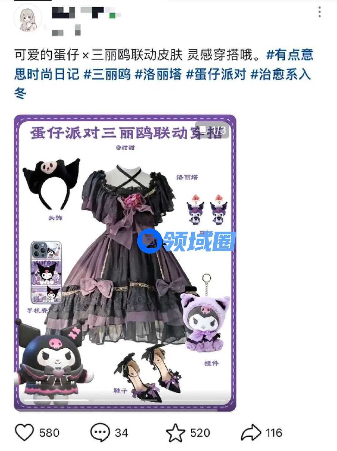 以联动为契机, 也有玩家汲取穿搭灵感,探寻时尚元素与联动的结合,为「大耳狗」和「库洛米」等人气明星打造了华丽的配装,与三丽鸥品牌的「少女感」相得益彰,也对 IP 起到了焕新效果。
