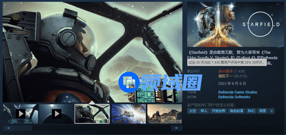 由于《星空》与其他B社游戏的质量差距巨大,大部分玩家对《星空》的表现表示很失望,《星空》在Steam上最近的评测已经由之前的“褒贬不一”变成现在的“多半差评”了,好评率仅为28%。