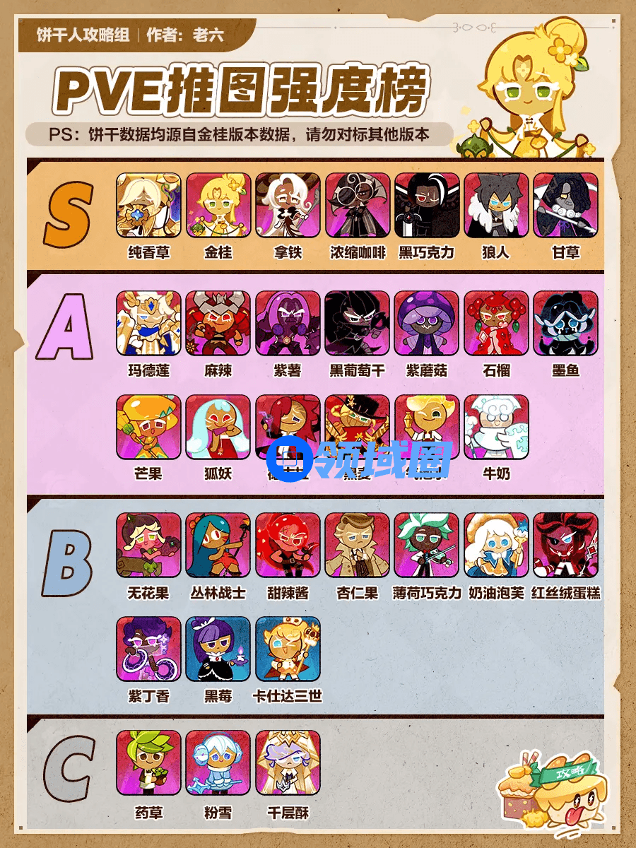 正式开启公测之后,在玩家给出的PVE强度榜单中,金桂饼干当之无愧名列前茅,跻身进入T0级别,被普遍看作是仅次于纯香草饼干的超强战力。颜值和强度拉满的金桂因此成为玩家们强推的主要角色之一。