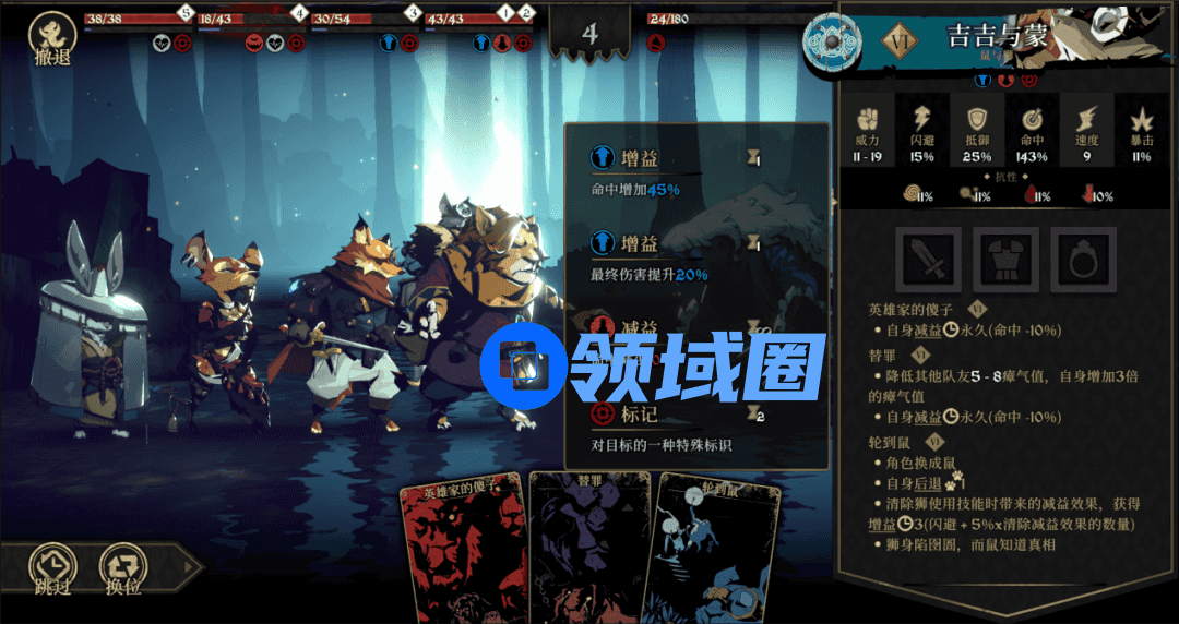 一方面,游戏中全动物角色的设计自带好感加成,无语言文字以及略显独特的美术风格,都能让这款游戏在同类产品中脱颖而出。另一方面,略显硬核的类《暗黑地牢》卡牌策略玩法,赋予了这款产品一些独游的精品气质,从而削弱了不少商业化的气息。
