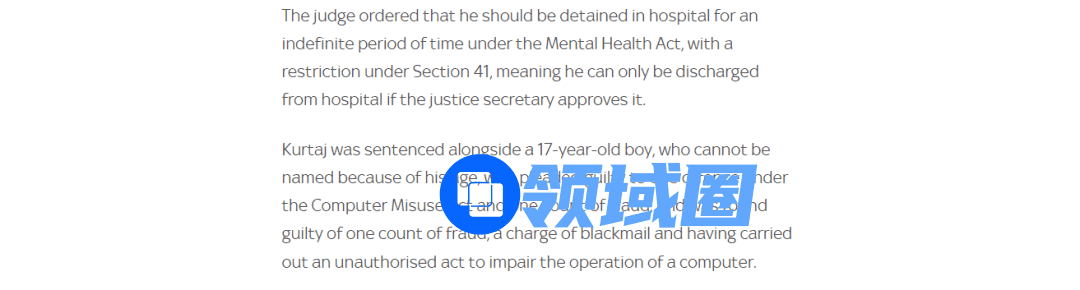 据SKY NEWS消息,多项心理健康水平测试显示Arion Kurtaj罹患重度自闭症,同时始终对“再次实施黑客犯罪”表现出不加掩饰的强烈意图。结合Arion Kurtaj所具备的互联网犯罪能力与不甚稳定的精神状况,英国当局对其下达了终生入院监管的判决。这意味着Arion Kurtaj未来将始终处于有关部门与安全医院的监管下,除非司法部长批准,否则不得获释。