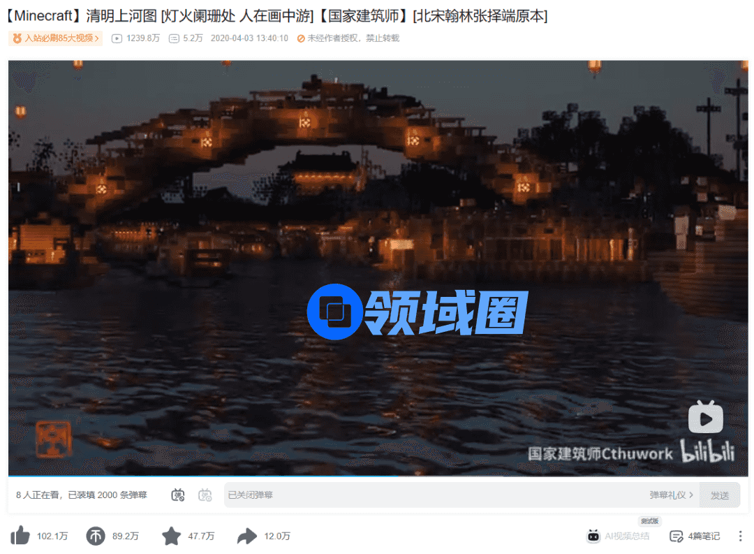 作为业内知名度最高的MC工作室之一,国建CW团队此前曾经创作过大量高人气的UGC作品,“清明上河图”、“太空电梯”等项目更是让他们名噪一时,其中仅“清明上河图”单个项目内容展示就在视频平台斩获了超千万次播放。
