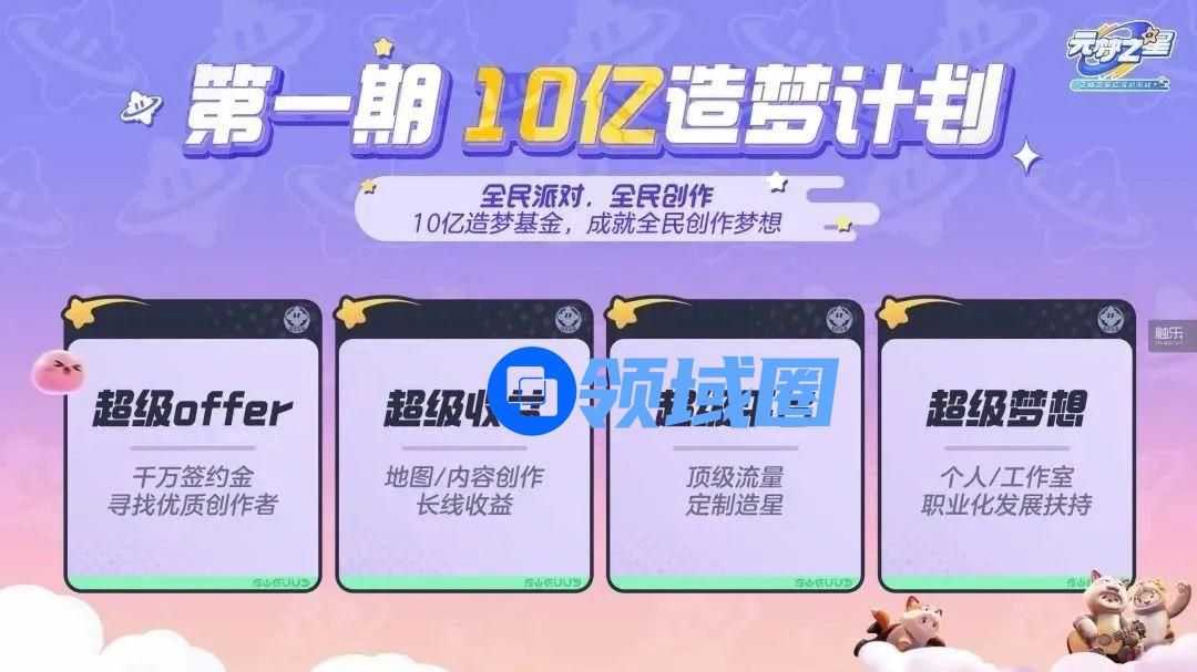 “10亿造梦计划”指的是《元梦之星》拿出10亿造梦基金,对UGC地图创作者进行全方位扶持,长期投入创作者能力培养、收益、职业化等发展路径,以鼓励全民参与,推动全民创作。直接拿出“10亿”巨款砸进UGC创作,腾讯这波激励力度可以说是诚意满满。