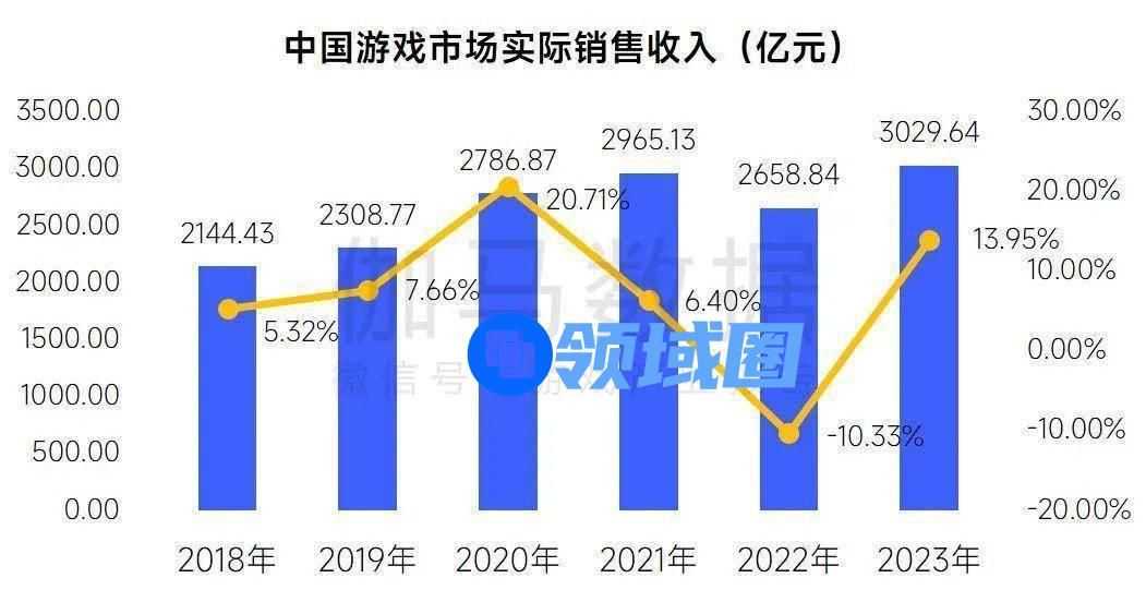2023年中国游戏市场实际销售收入达3029.64亿元,同比增长13.95%,已在较大程度上出现回暖。回暖主要受集中上线的高品质新游带动,例如《崩坏:星穹铁道》《逆水寒》手游本年累计流水均达数十亿元。