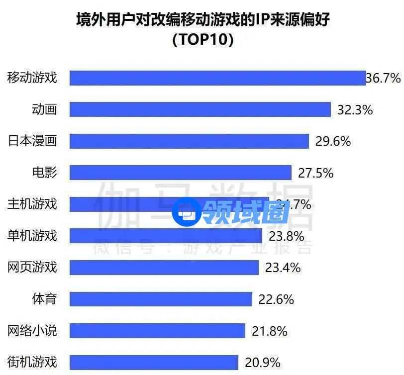 全球性IP具备潜力挖掘空间。在广泛的用户偏好下,IP能在获客、留存、流水变现等层面发挥重要作用,而受用户普遍认知的影响,全球性IP可在上述价值的基础上,额外发挥拓展出海地区的利好,因而具备更高的潜力。对于研发团队而言,另一项利好在于为夯实IP价值、加码IP变现能力,全球性IP的合作意愿也有所提升,诸如“合金弹头”“暗黑破坏神”“阿凡达”等高知名度的全球性IP均于近年授权游戏改编,这意味着企业有更大的机会分享全球性IP的利好。伽马数据也调查了境外用户偏好的IP来源,企业可考虑与多维度的IP来源重点合作。