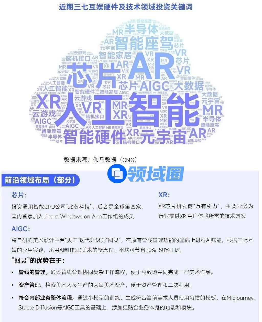 虽然在挖掘其他赛道的潜力,但游戏产业依然是三七互娱当前的重点。现阶段,三七互娱正逐步往产业链上游拓展,例如以投资形式加码人工智能、芯片研发等领域。未来,向产业链上游的拓展将赋予三七互娱更大的想象空间,在直接提升游戏表现力之外,与消费电子、智能驾舱、AIGC、XR等应用的链路也将更加紧密,增加新的领域挖掘可能。此外,得益于布局技术的广度与深度,三七互娱在元宇宙领域的竞争力也将进一步提升。