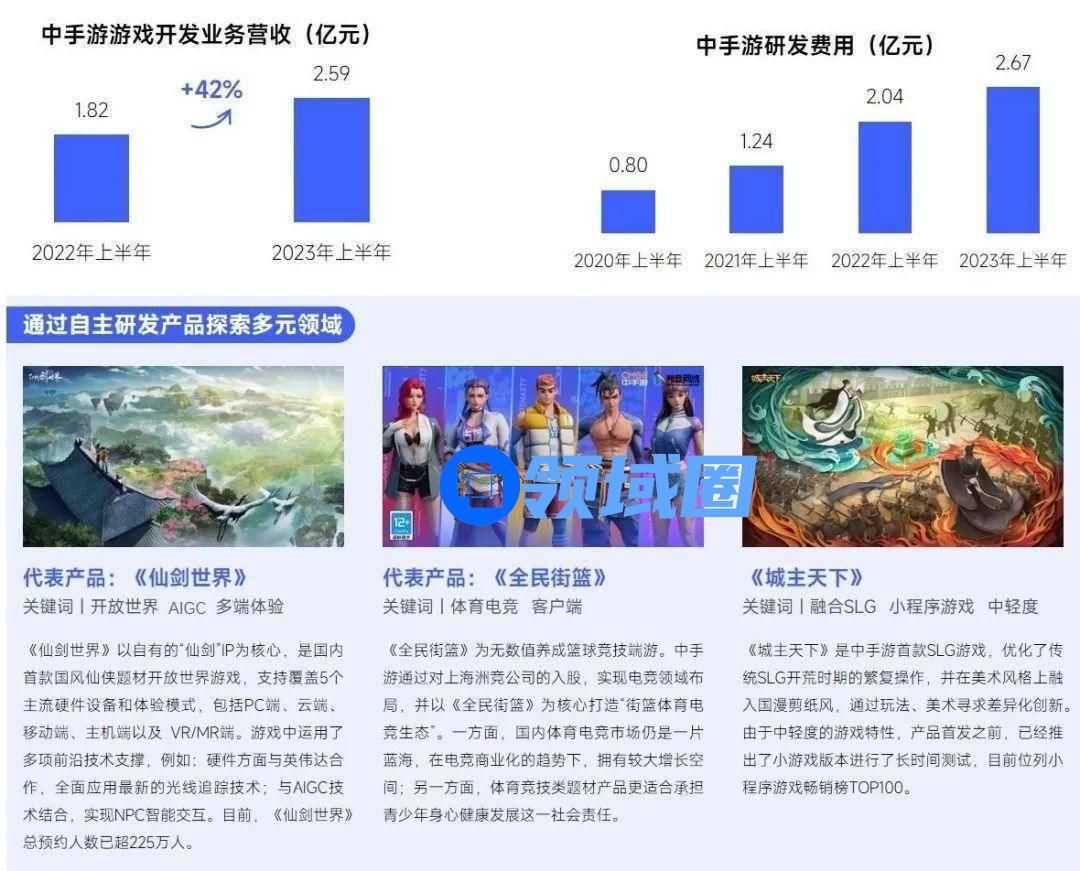 2023年中期财报显示,中手游游戏开发业务营收同比增长42%,研发能力的提升或将为中手游带来新的潜力增长点。目前,中手游已明确“联合研发+自主研发”并行的研发模式,一方面,通过联合知名IP版权方,发挥头部IP优势,这也是中手游保持快速发展的重要来源。在此基础上,中手游确立了开放世界、街篮竞技和融合SLG三大游戏品类的自主研发布局策略,通过三大自研品类进一步拓展其在前沿技术、创新品类、电子竞技等多元领域的探索,从而发掘更多业绩增量。