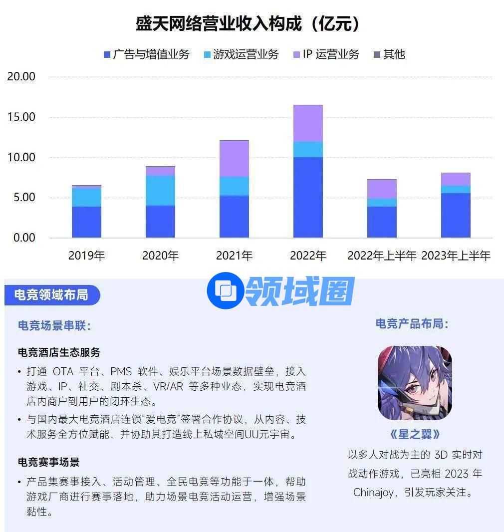 链接能力是盛天网络的核心潜力来源,从成果来看,这项核心潜力发挥的作用已愈发强劲,财报显示,2023年上半年盛天网络广告与增值业务收入为5.61亿元,同比去年增长42%。以链接能力为依托,盛天网络围绕多个场景,构建包含平台、内容、服务的一体化运营体系,不仅增加了单一业务的抗风险能力,也利好数字娱乐场景的打造。在这一思路下,伽马数据看好盛天网络在客户端游戏、电竞领域的潜力。客户端游戏上,用户对电脑游玩的偏好度提升,市场规模增加的同时,叠加多端发行、手游模拟器等趋势,利好盛天网络长期布局的网吧及客户端生态。电竞领域,盛天网络布局了由线上至线下的多维场景:线上,计划发布多端电竞游戏《星之翼》,并推动电竞社交平台发展,拓展用户娱乐需求;线下,将旗下易乐途、易乐游平台业务与实体场景串联,协同品牌方和酒店业主共同为电竞酒店赋能。
