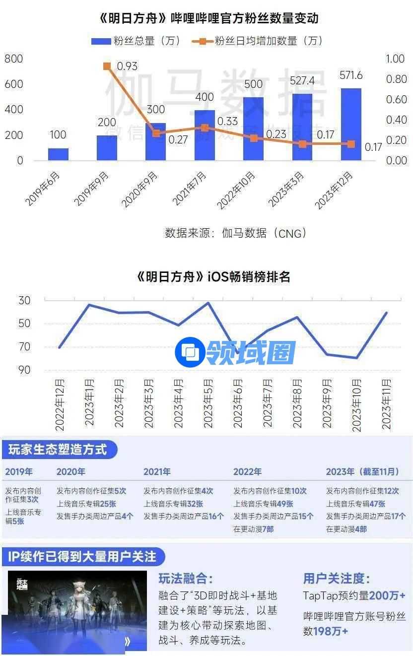 鹰角网络在产品长周期运营的能力显现,旗下《明日方舟》保持较好的市场表现,其原因在于:首先,在完善角色及世界观的基础上,通过常态化更新,推出集成战略、危机合约等新模式,并融入Roguelike玩法,一方面维持玩家活跃,另一方面以新模式、新玩法促进玩家回流;其次,注重用户生态塑造,通过官方发布的内容创作征集驱动玩家进行内容产出,借助音乐品牌“塞壬唱片-MSR”、周边品牌“朝陇山”、服装品牌“一拾山”等企划将产品影响力扩散到游戏之外,从而形成裂变效应。通过游戏内部、外部同时发力,使以“明日方舟”为核心的IP宇宙展现出较高的IP价值,续作《明日方舟:终末地》通过区别于《明日方舟》的创新融合玩法丰富IP品类矩阵,有望再度释放IP影响力带来的潜在价值,接力《明日方舟》的高流水表现。