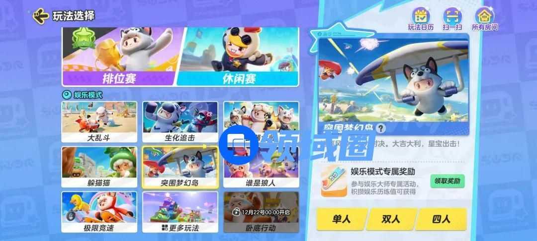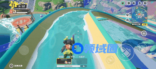 举一些简单例子,像是“突围梦幻岛”玩法整体依然沿用了战术竞技的玩法框架,却在场景中加入了派对游戏特有的关卡设计,比如能够让玩家快速移动的水上滑梯,一飞冲天的喷泉等,削弱硬核游戏体验的同时,也能增添玩家在玩法上获得的多种乐趣。