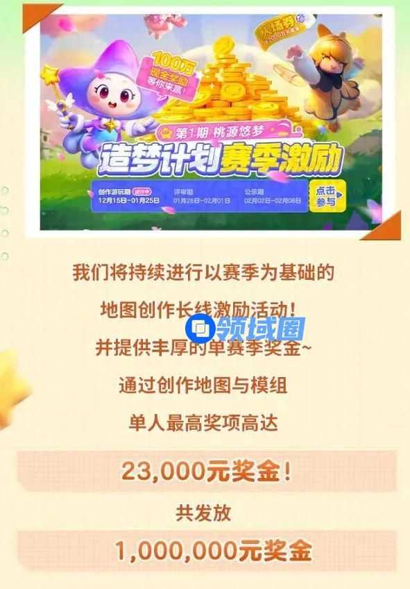 一方面,《元梦之星》准备了2000万激励基金充分挖掘优秀地图创作者,无论是个人还是组队,针对不同的群体打造与之匹配的奖励活动。而对于那些以兴趣为主的创作者,《元梦之星》以赛季和主题赛的形式,提供多种方式鼓励全民参与,首期“桃园悠梦”赛季提供200万激励基金,并设立个人和工作室两个奖项分属,扶持各路创作达人。
