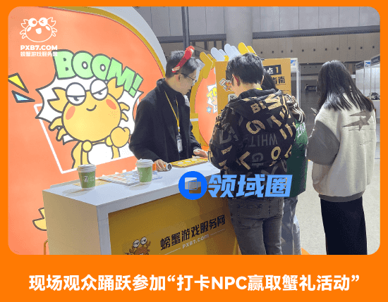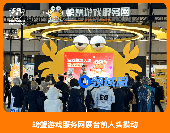 螃蟹游戏服务特别打造的250㎡的大型展台,以其独特的设计和风格让人眼前一亮。台前汇聚了大批的玩家,不仅可以试玩各种热门游戏,获取精美礼品和精彩福利,还可以参与各种趣味与益智的互动问答游街环节。