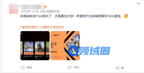 在国内,TGA的影响力也是一年高过一年。今年的B站、小红书和微信都开设了“玩家之声”投票的通道,更多国内玩家有了支持自己喜爱游戏的机会。而这些参与投票的玩家中,有一群人的身影显得异常活跃,他们积极地在各个社区分享TGA的投票链接,研究如何为自己喜爱的游戏投票。同时嘴里还经常念叨着诸如“1600星琼”之类的话语。