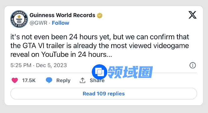 Rockstar Games让自己的游戏紧跟着时代在走。《GTA 6》预告片结合了大量短视频元素,所有人物行为都鲜活生动地展现出了如今“佛罗里达不养闲人”的标签化特征。游戏角色真实的表现已经令人无法轻松分辨出虚拟与现实,播放量很快过亿,随随便便就打破了YouTube平台24小时观看次数的吉尼斯世界记录。