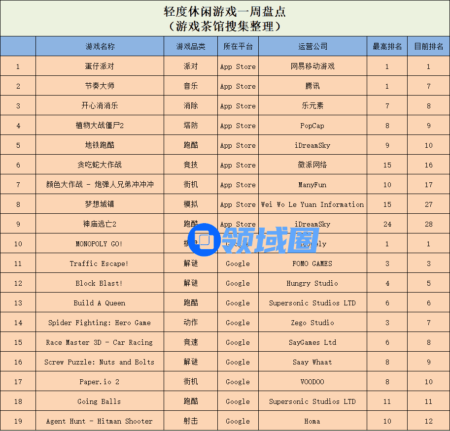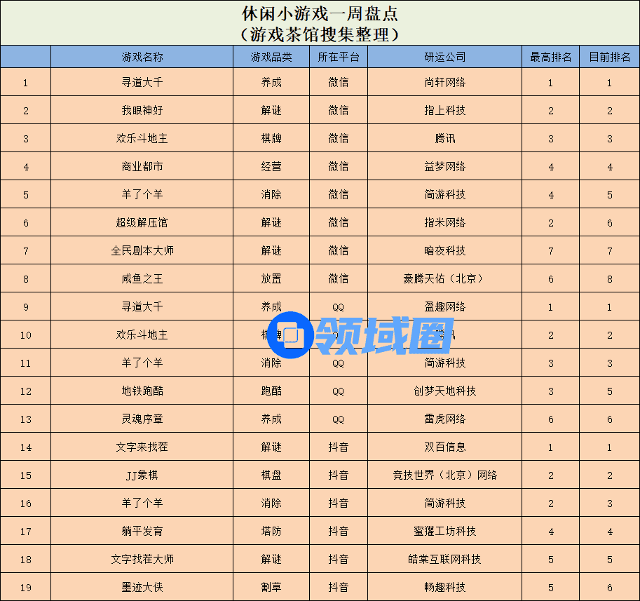 休闲新游周报每周统计微信小游戏、QQ小游戏、抖音小游戏、硬核小游戏以及App Store和Google Play上的新游爆款,并按照分类制作表格,将游戏排名情况等信息公布,希望给到行业同侪帮助。