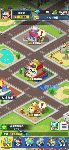 该游戏是一款以商圈发展为题材打造的模拟经营游戏,玩家进入游戏后,可以跟随任务引导,直接在商圈中建造店铺,然后通过店铺升级和客户招揽,吸引顾客消费获得收益。同时,玩家还可以通过招揽吸纳人才,这些人才可以派驻到不同产业中,提升产业的收益效率,同时也加入历练阵营,提高我方战力,更快地在与对方的谈判中赢得先机。