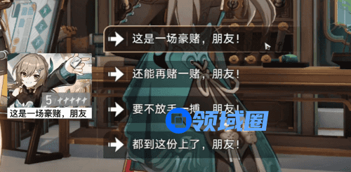 不仅如此,这个任务的最后还安排了玩家们“懂的都懂”的抽卡环节,尽管有着十连保底的加持,但这并不能改变你抽出“垃圾”的结果。面对玩家的质问,游戏借着NPC的口,道出了这一切的荒诞本质: