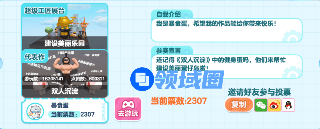 更深入来说,沿着「官方搭台、创作者唱戏、用户投票」这样的关系链条,在内容共创的主轴之下,本次【超级工匠招募】活动是对工具化进程、激励体系搭建、和谐创作环境等构筑的「生态整合力」的高调宣示,也揭示出了《蛋仔派对》稳扎稳打,持续领跑 UGC 赛道的成功脉络。