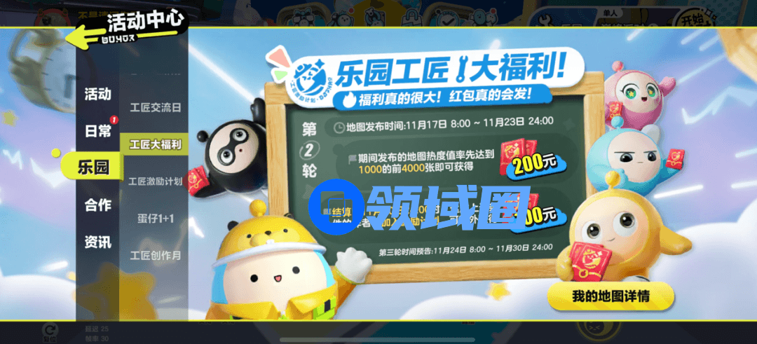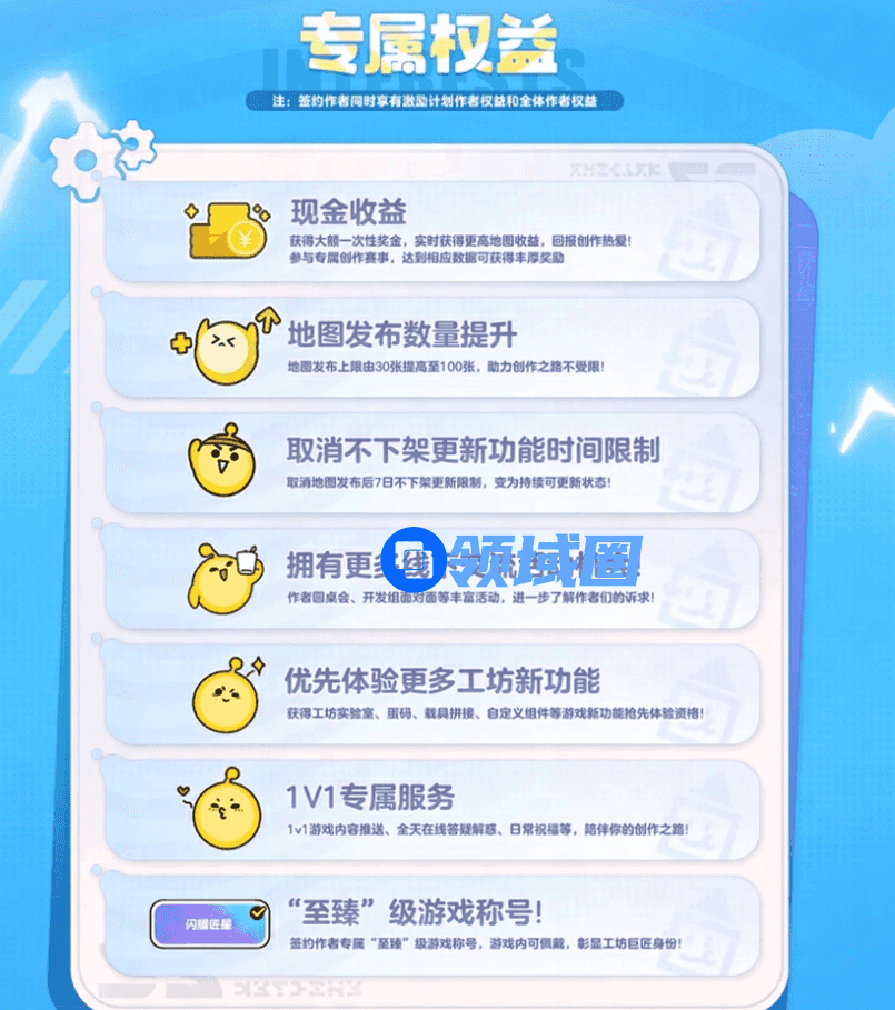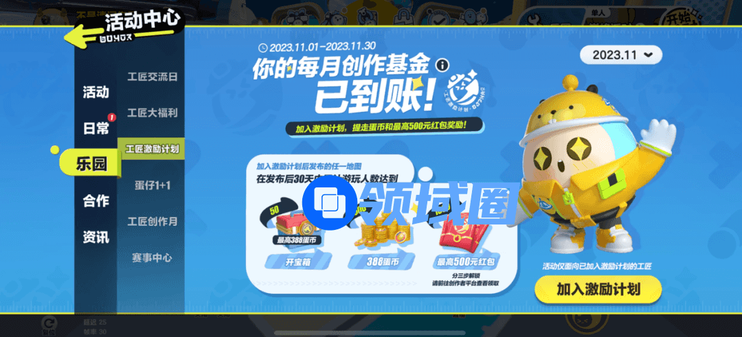 除了以不同层次的创作活动鼓励内容创作之外,「共创蛋时代」计划还设立了低门槛的「激励计划」,旨在设定一个长期的激励目标,以持续的收益驱动创作者们更好地发挥创意,从人生维度上打开发展的新格局。以地图游玩人数作为评判标准,只要达成破万门槛即可申请加入该计划,根据后续地图发布热度收取稳定现金收益,实现“稳稳的幸福”。而官方也将不断挖掘更多优秀创作者,邀请其加入官方签约计划,一方面显著提升其创作收益,另一方面也具有参与官方各类交流会、提前体验编辑器新版本等优先权益,帮助其更好地巩固个人创作能力的「基本盘」的同时,也为他们打开一个更加清晰的未来。