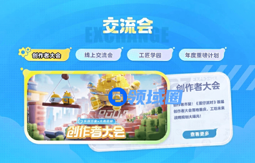 与此同时,官方也不断开辟线上线下的交流空间,进一步拉抬创作沟通的氛围。在这个层面,《蛋仔派对》打造了面向多层级的交流体系,包含了线下的「工匠学园·交流日」、「创作者见面会」、「创作者大会」,以及=「工坊 UGC线上 交流会」等等,通过黏合创作者之间、官方与创作者之间的良好关系,确保生态的交流沟通渠道畅通无阻。