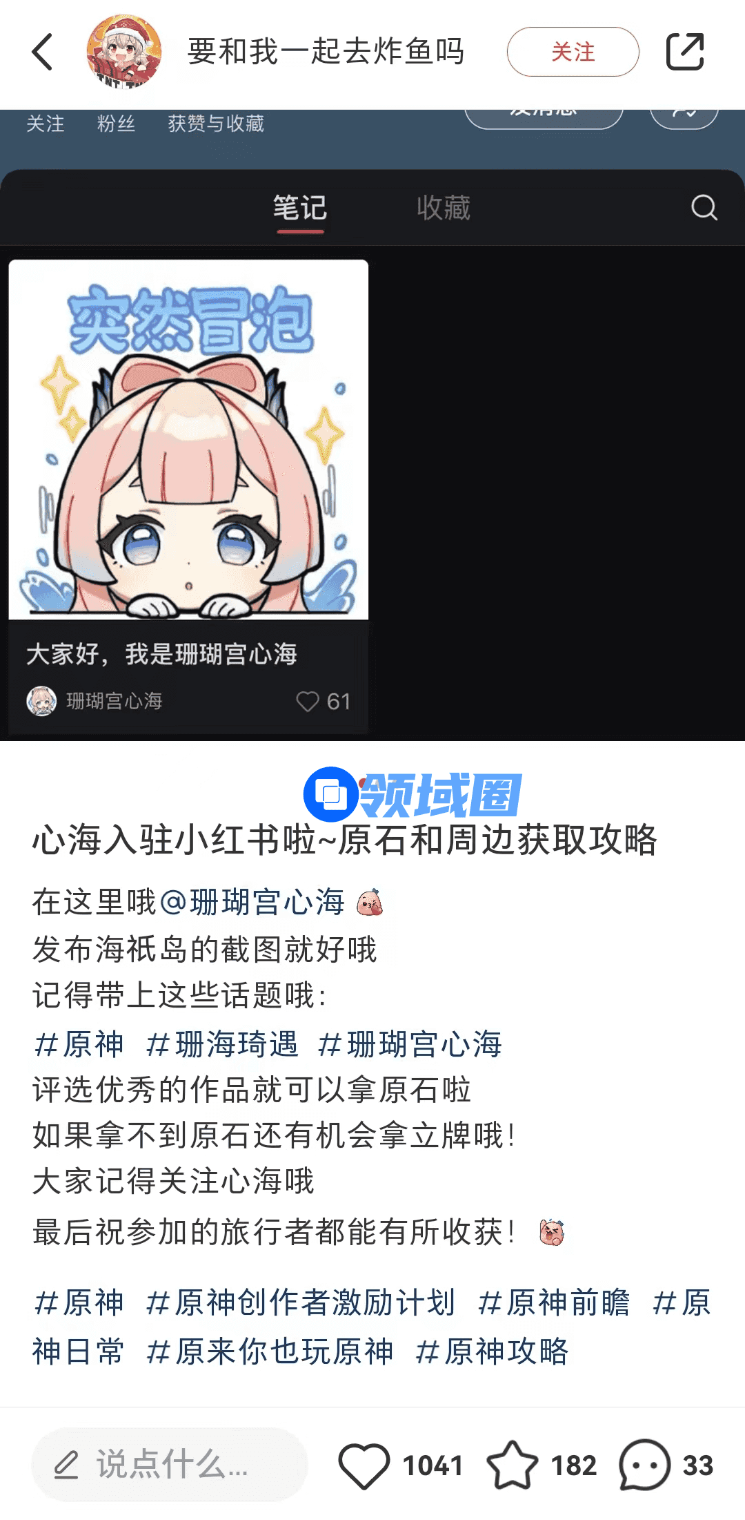 在以上玩法之外,本次社区联动活动的最大的亮点之一就是“珊瑚宫心海入驻”。或是考虑到小红书“种草”、“真人”等标签深入人心,《原神》干脆直接让游戏中备受欢迎的角色以“真人”的方式入驻小红书,发布笔记,“入乡随俗”地和玩家们进行分享和互动。
